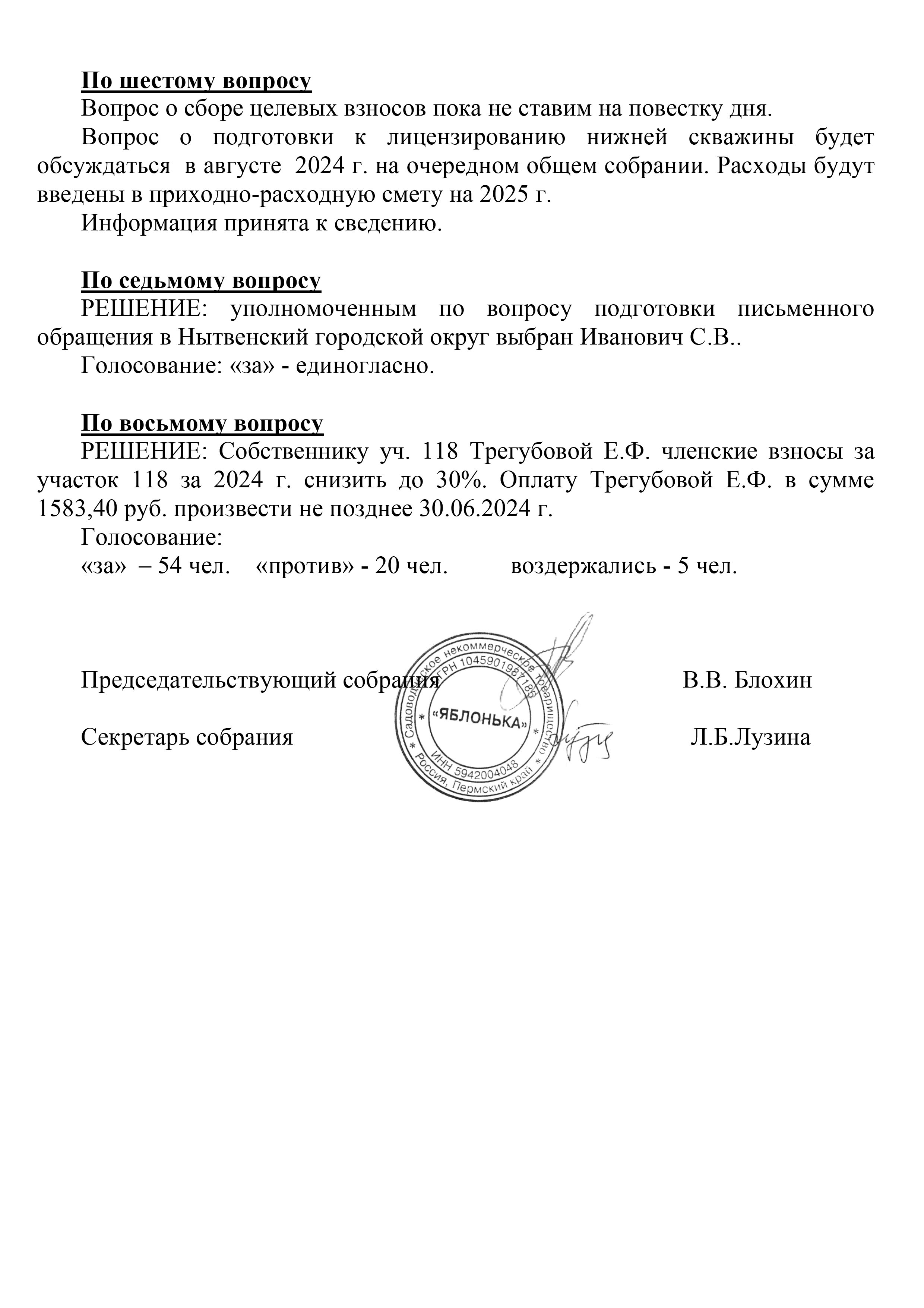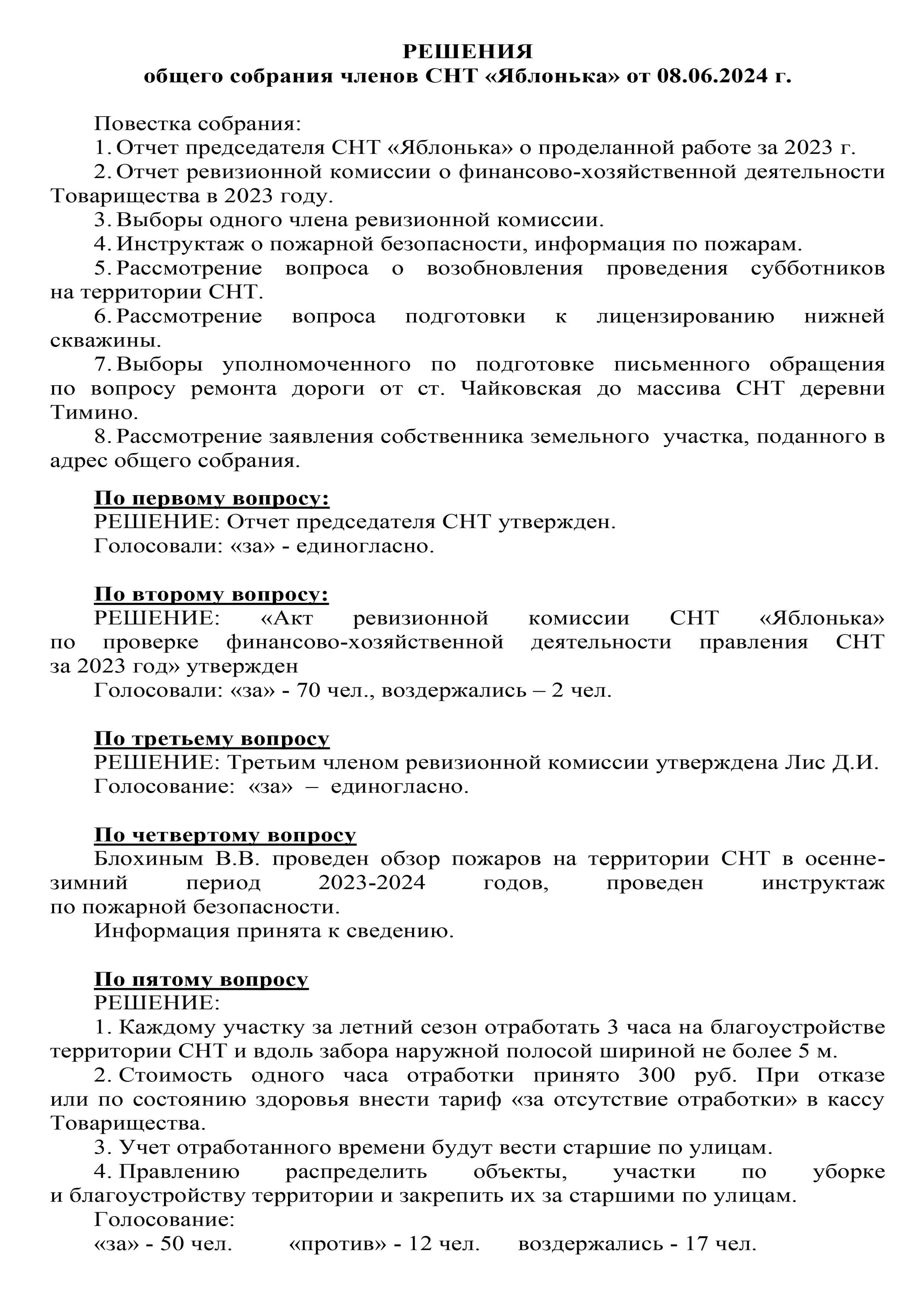 СкачатьРешения общего собрания от 08 июня 2024 г. обязательны для исполнения всеми!